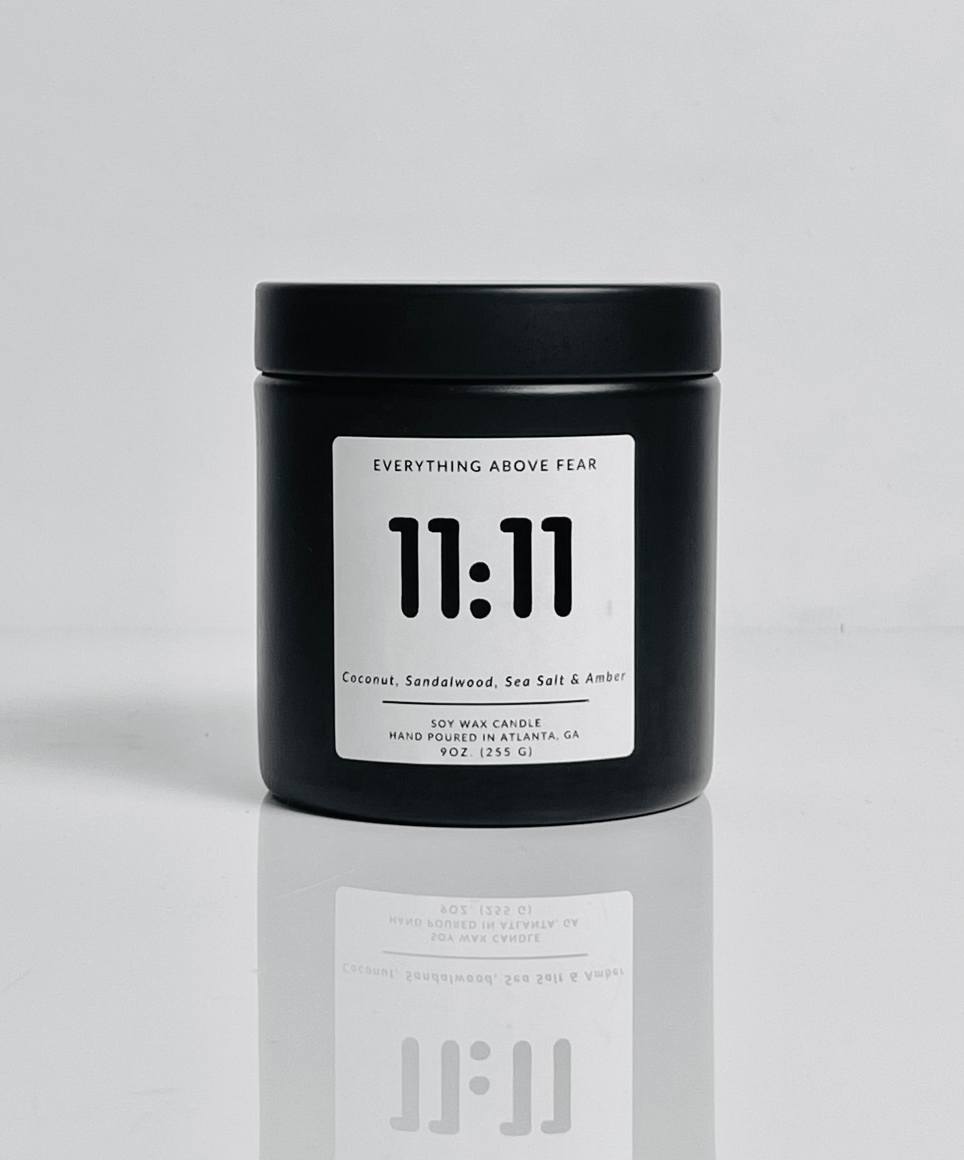 Experience the calming comfort of 11:11 in a modern, matte black tin. This 9oz candle blends creamy coconut, warm amber, and smooth sandalwood to create an uplifting yet calming aroma that transforms any space into a moment of clarity and peace.