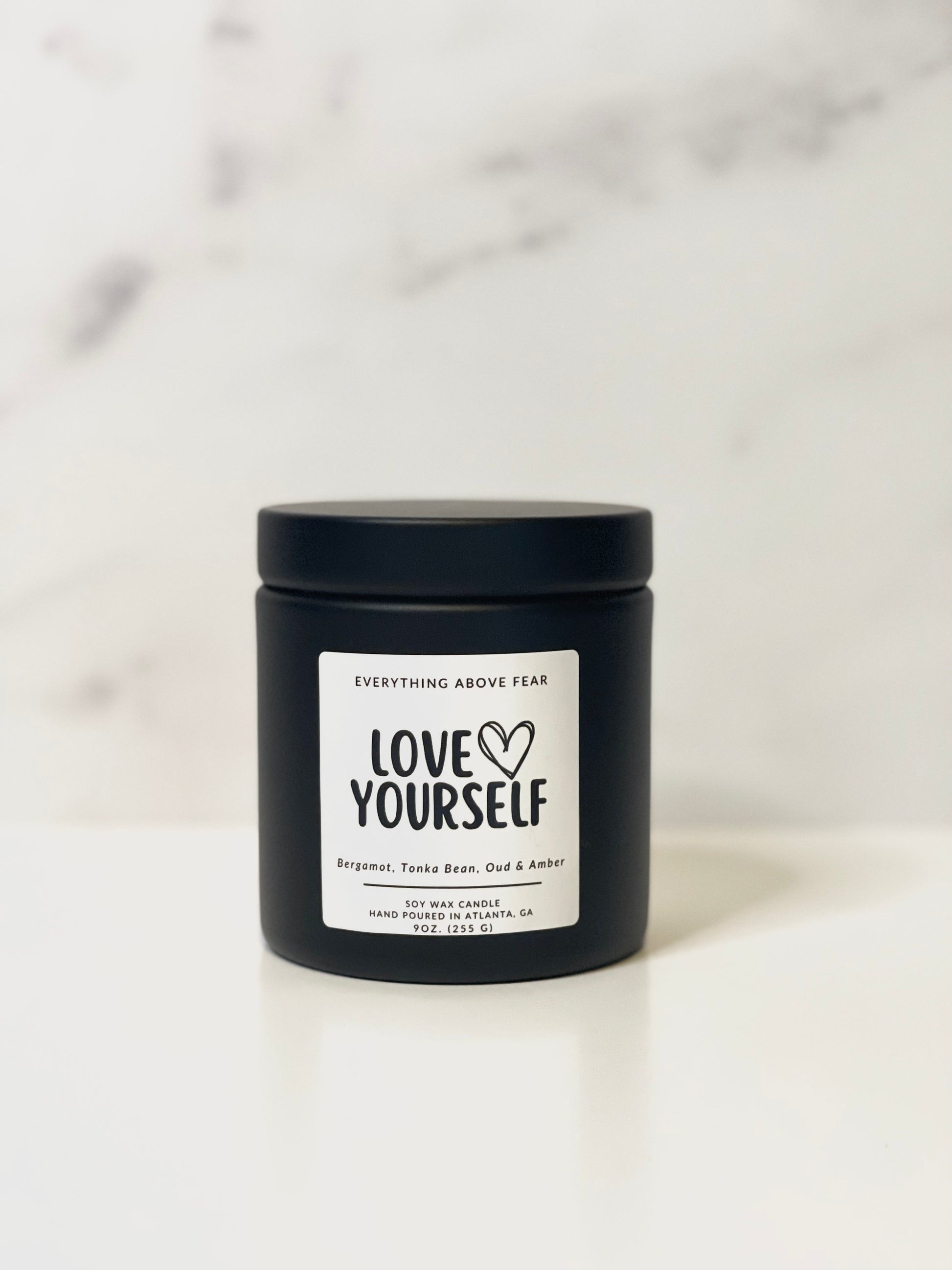 You are your greatest asset and should fall in love with yourself daily. "Love Yourself" offers a warm and inviting aroma that creates a peaceful atmosphere. Blended with bergamot, amber and oud, this candle is perfect for moments of self-care and warm embrace or to add a touch of relaxation to your home. A comforting hug of a candle that will fill your space with a sense of calm. Light it up whenever you’re in need of a moment of peace and serenity!